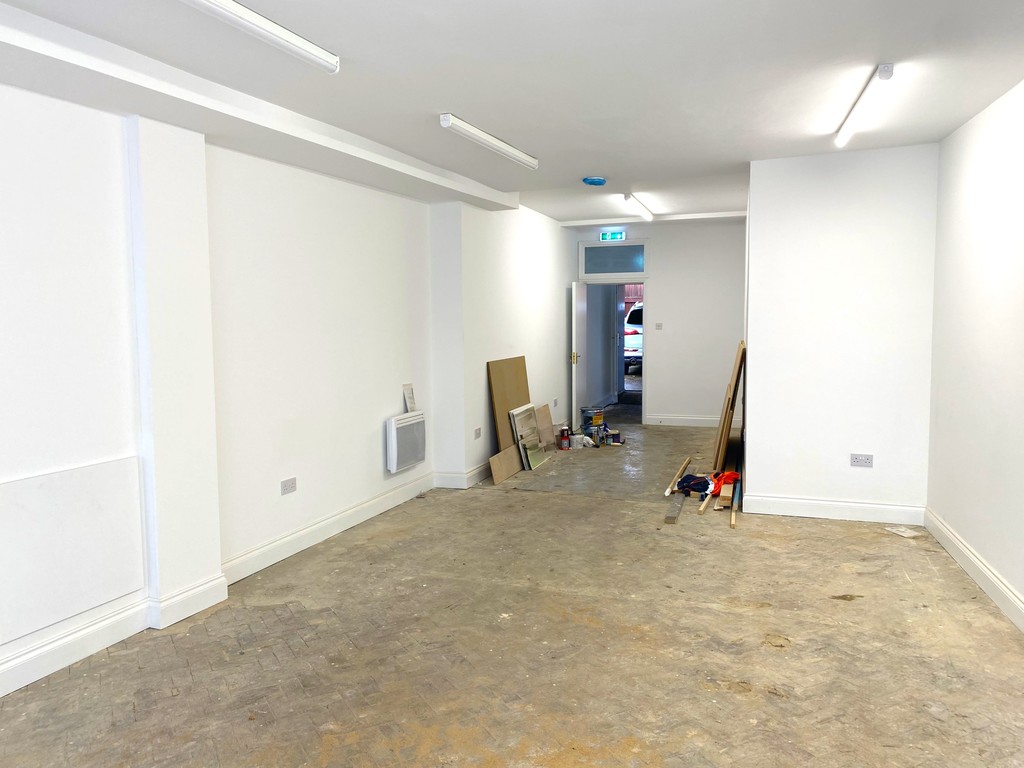 Refurbished Grade II Listed ground floor lock-up shop in established town centre location. Approx. 635 sq.ft with double frontage, electric heating, rear yard access, and new WC. Available immediately.