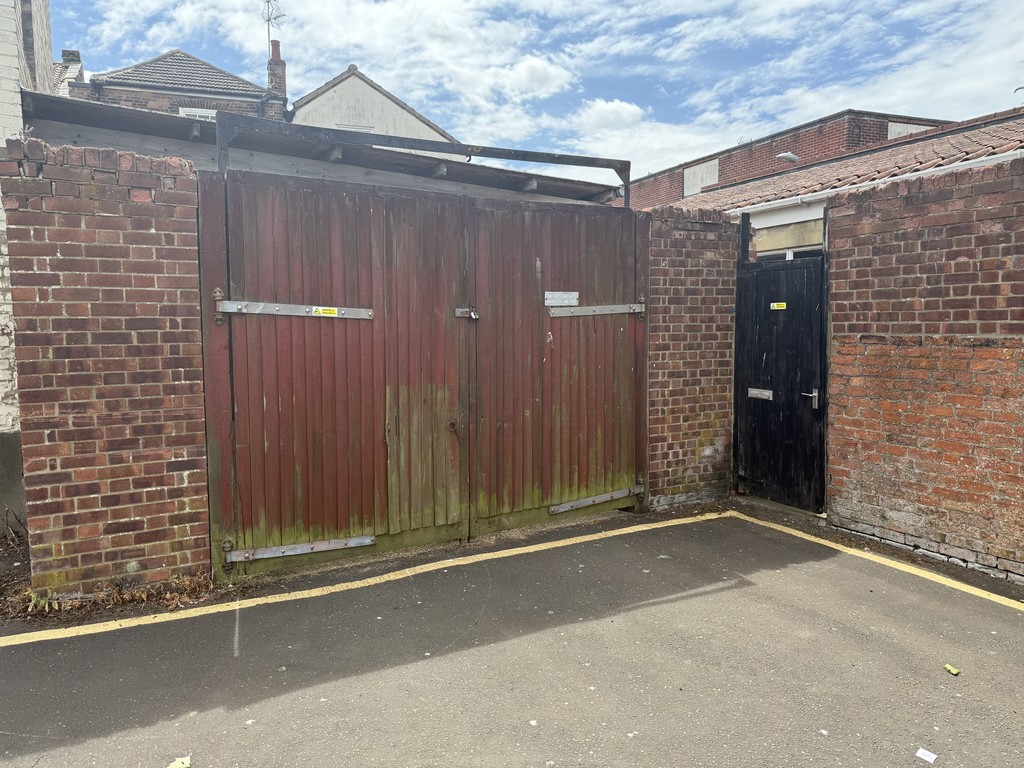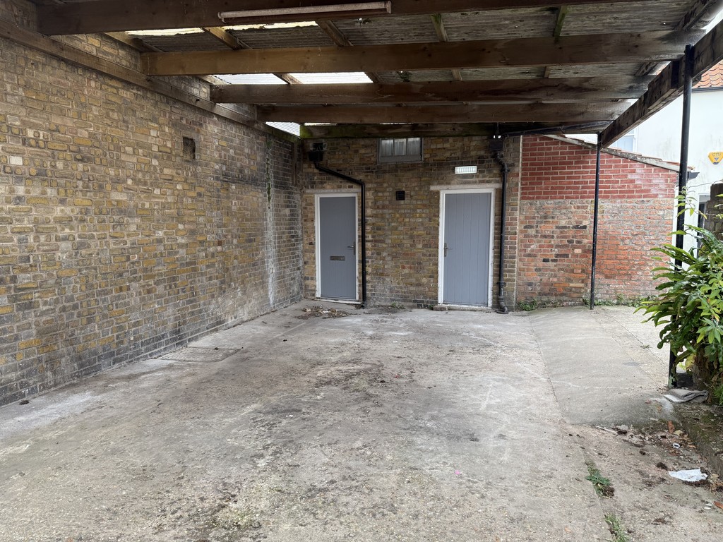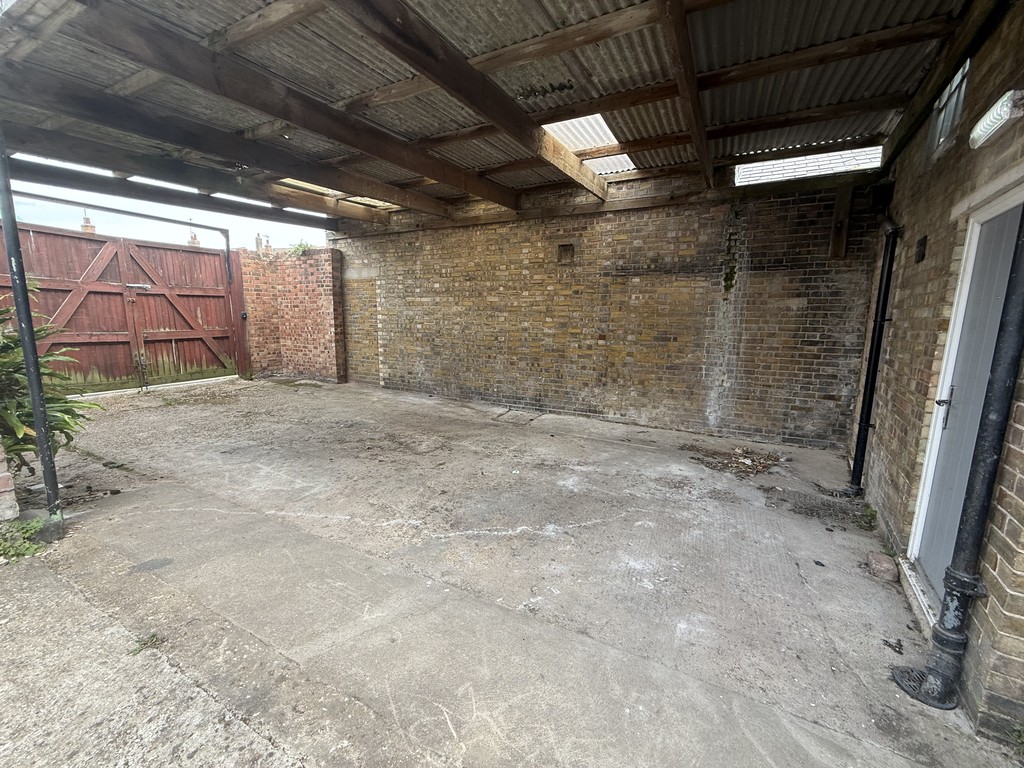Covered concrete hardstanding with gates providing vehicular access from Regent Way.