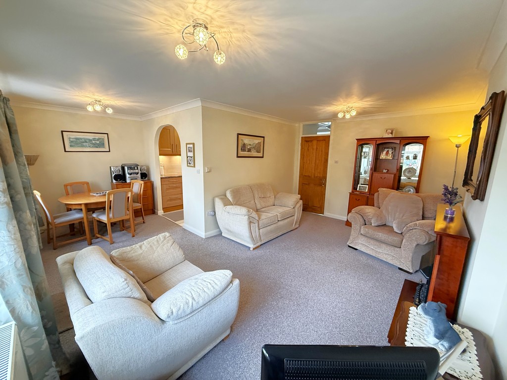 LOUNGE AREA 16' 10" x 10' 10" (5.13m x 3.3m) Skimmed and coved ceiling, power points, TV point, two double radiators, UPVC double glazed window to front, free standing fire place with living flame effect electric fire. Door to inner hall. Opening to:-