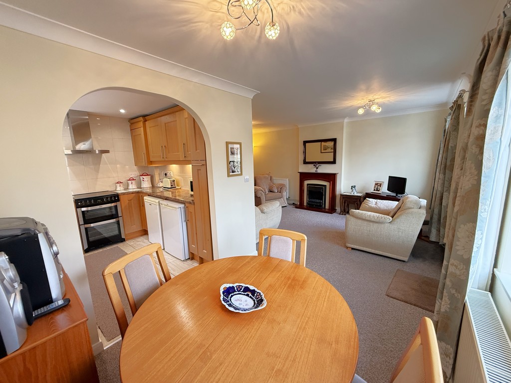 DINING AREA 8' 7" x 7' 3" (2.62m x 2.21m) Skimmed and coved ceiling, double radiator, UPVC double glazed window to front. Arched opening through to:-