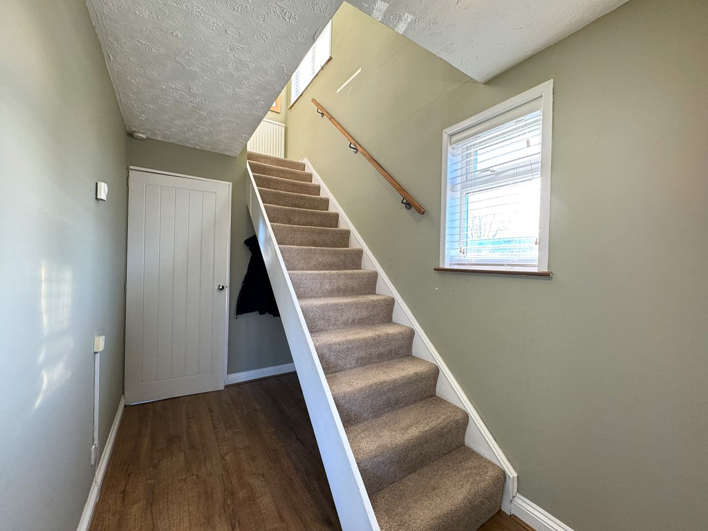Entrance Hall With UPVC entrance door, inner door, wood effect flooring, radiator, BT telephone point and stairs to first floor landing.