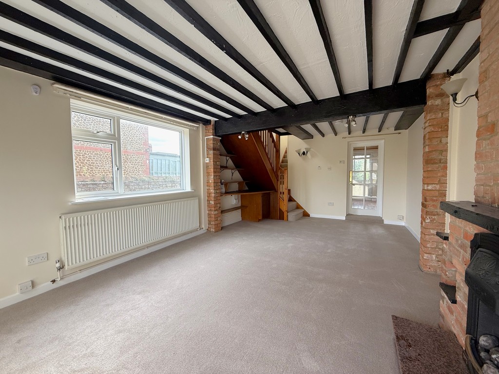 Living Room / Diner 21' x 12' 2" (6.4m x 3.71m) Dual aspect with UPVC & double glazed front entrance door, exposed brick fireplace & chimney breast with inset gas fire, exposed beams to ceiling, television aerial connection, points for wall lights, radiator and room thermostat.