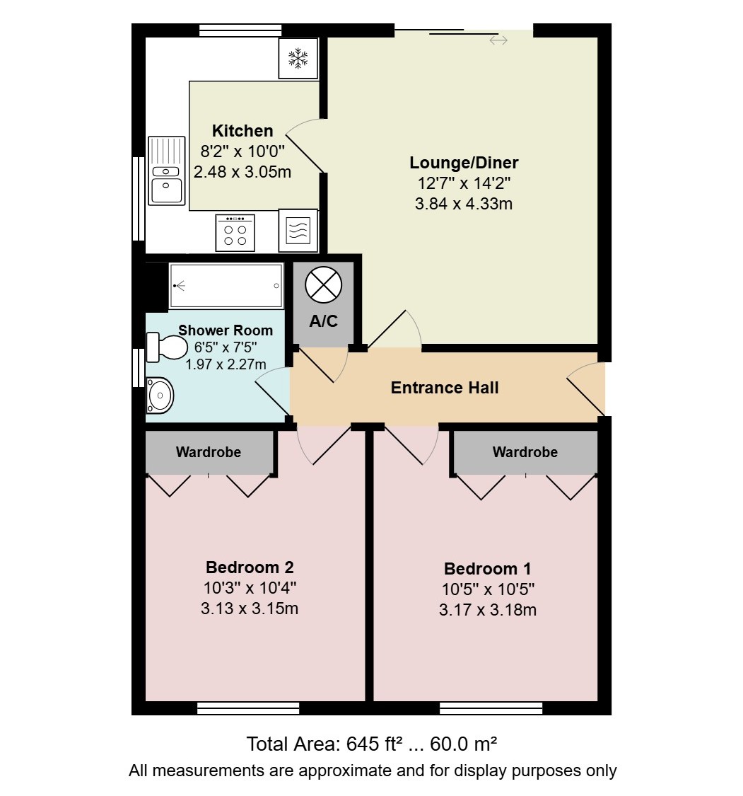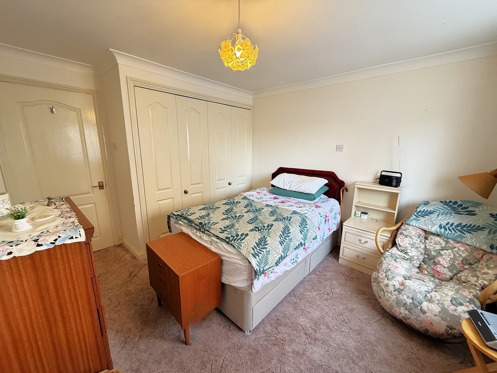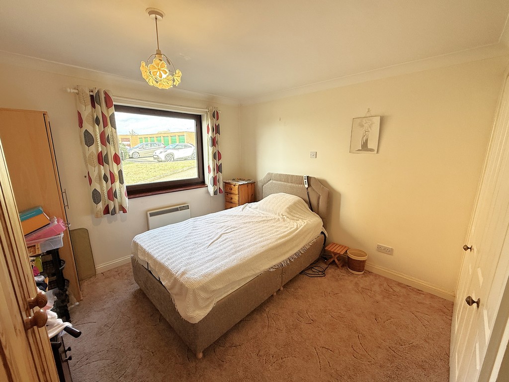 BEDROOM TWO 10' 4" min x 10' 3" (3.15m min x 3.12m) Skimmed and coved ceiling, power points, electric wall heater, double glazed aluminium window to front, built-in wardrobe.