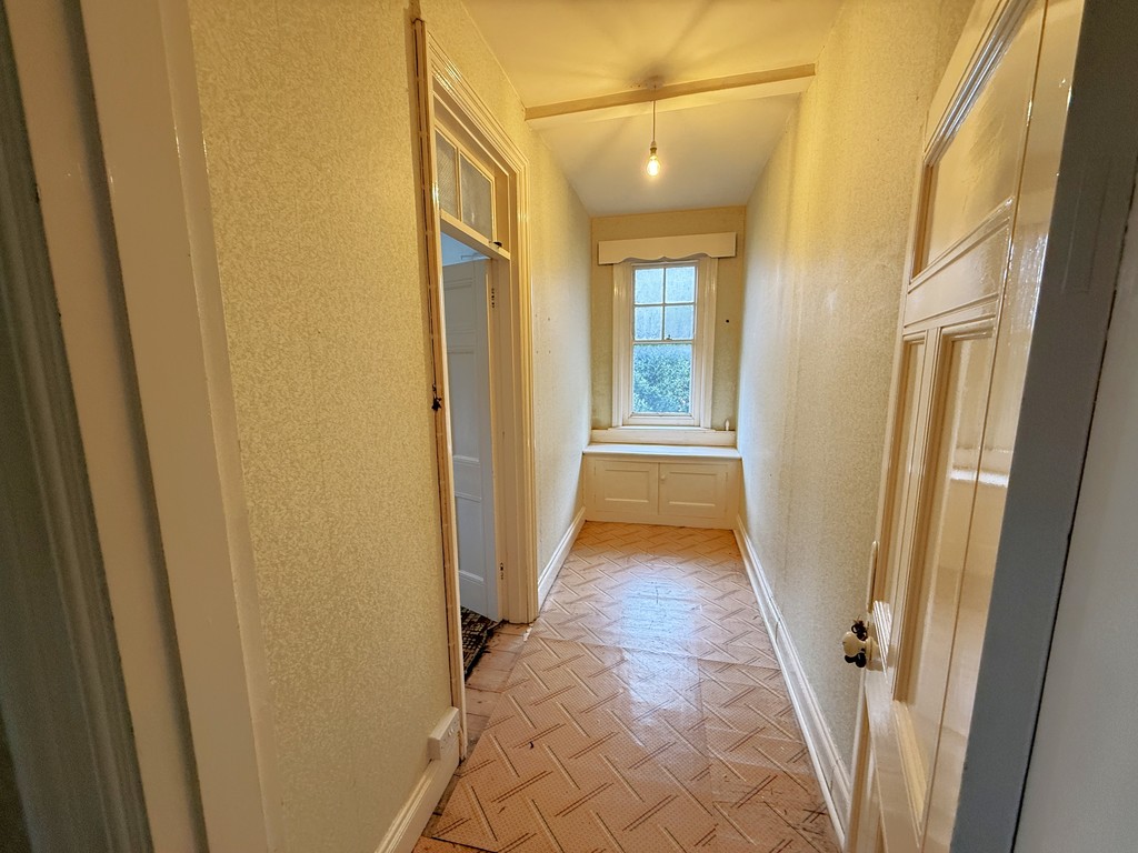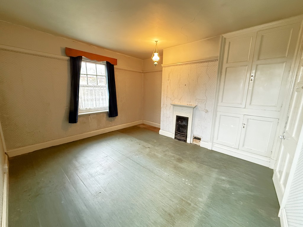 DINING ROOM 13' 5" x 12' 1" min (4.09m x 3.68m min) Sash window to side, power points, airing cupboard housing hot water cylinder, open fireplace set in tiled surround and hearth, door to inner hall. Door to:-