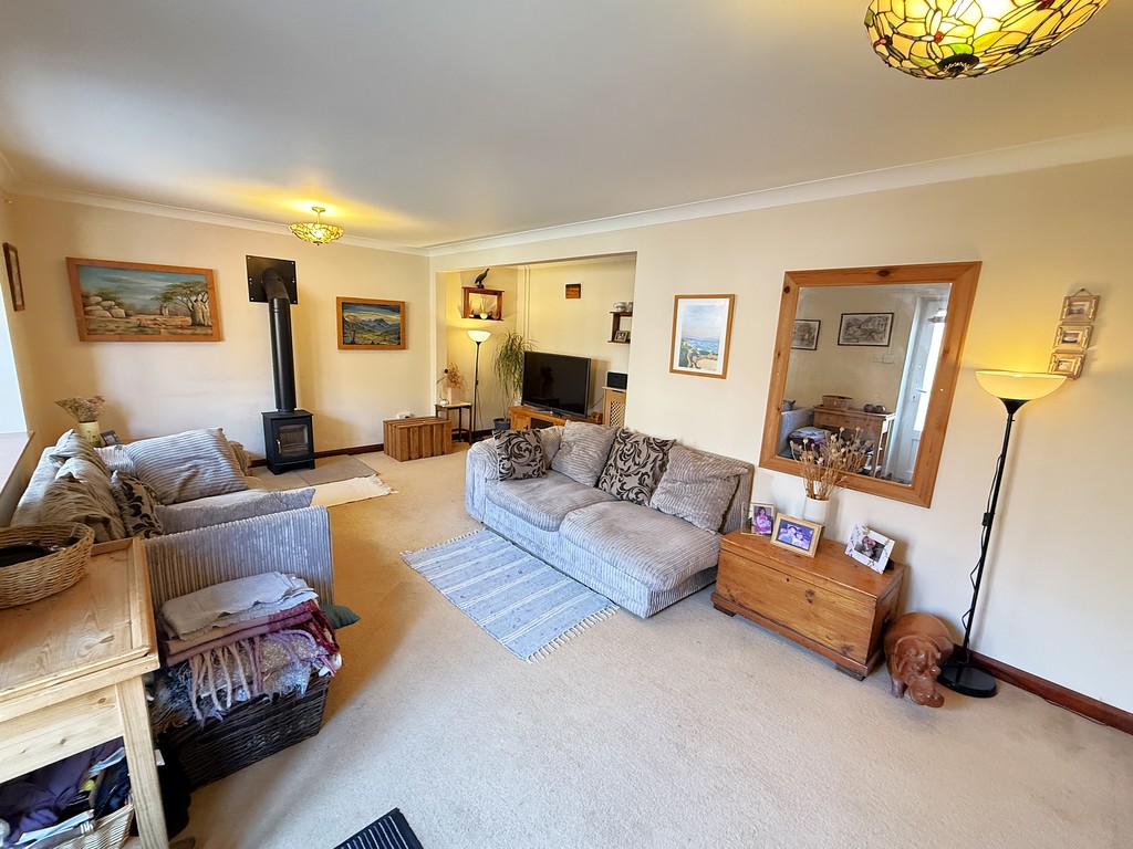 LIVING ROOM 20' 11" x 10' 11" min opening to 15'2" max (6.38m x 3.33m min opening to 4.64m max) Skimmed and coved ceiling, power points, television points, telephone socket, single radiator, double radiator, UPVC double glazed bow window to front, wood burner set on a stone hearth. Door to inner lobby. Door to:-