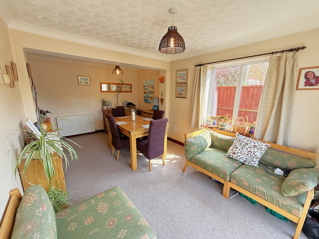 DINING ROOM 17' 2" x 10' 3" max (5.23m x 3.12m max) Textured and coved ceiling, power points, two single radiators, UPVC double glazed window to side, UPVC double glazed double doors to rear. Door to:-