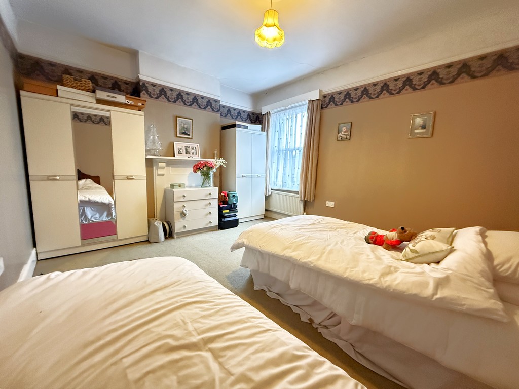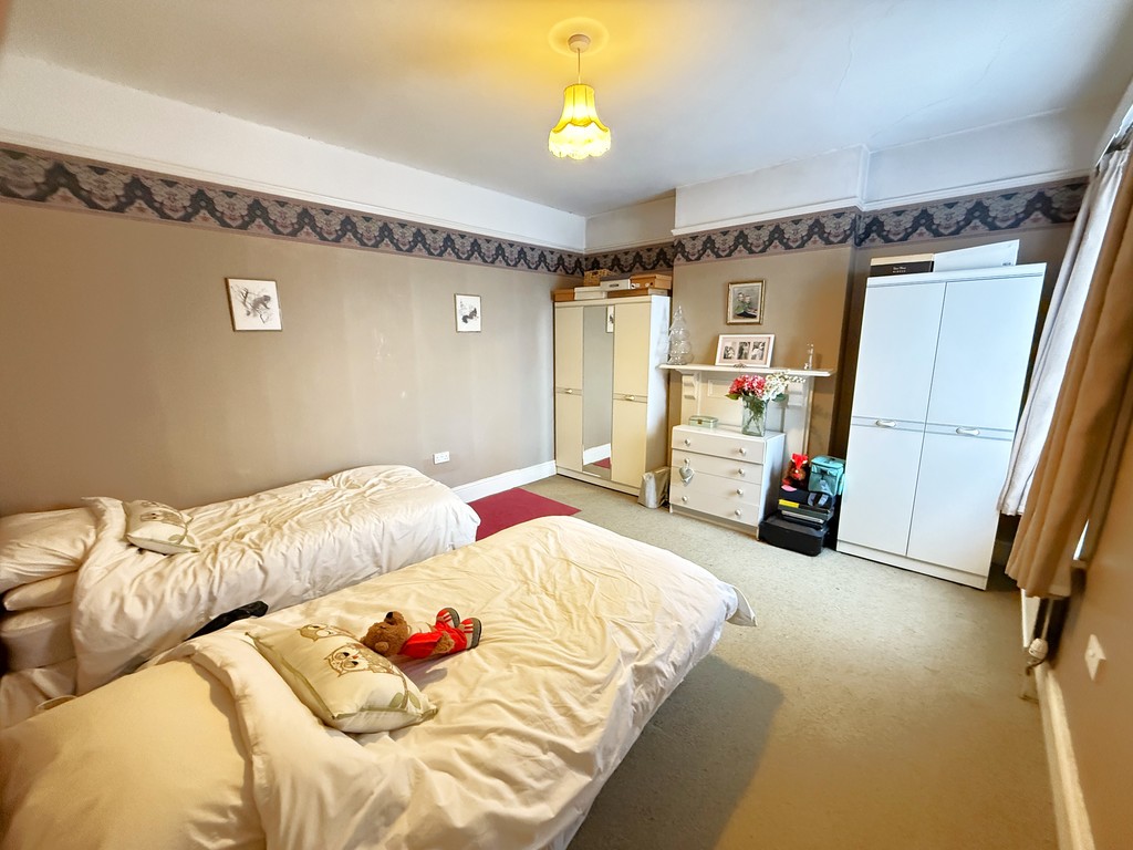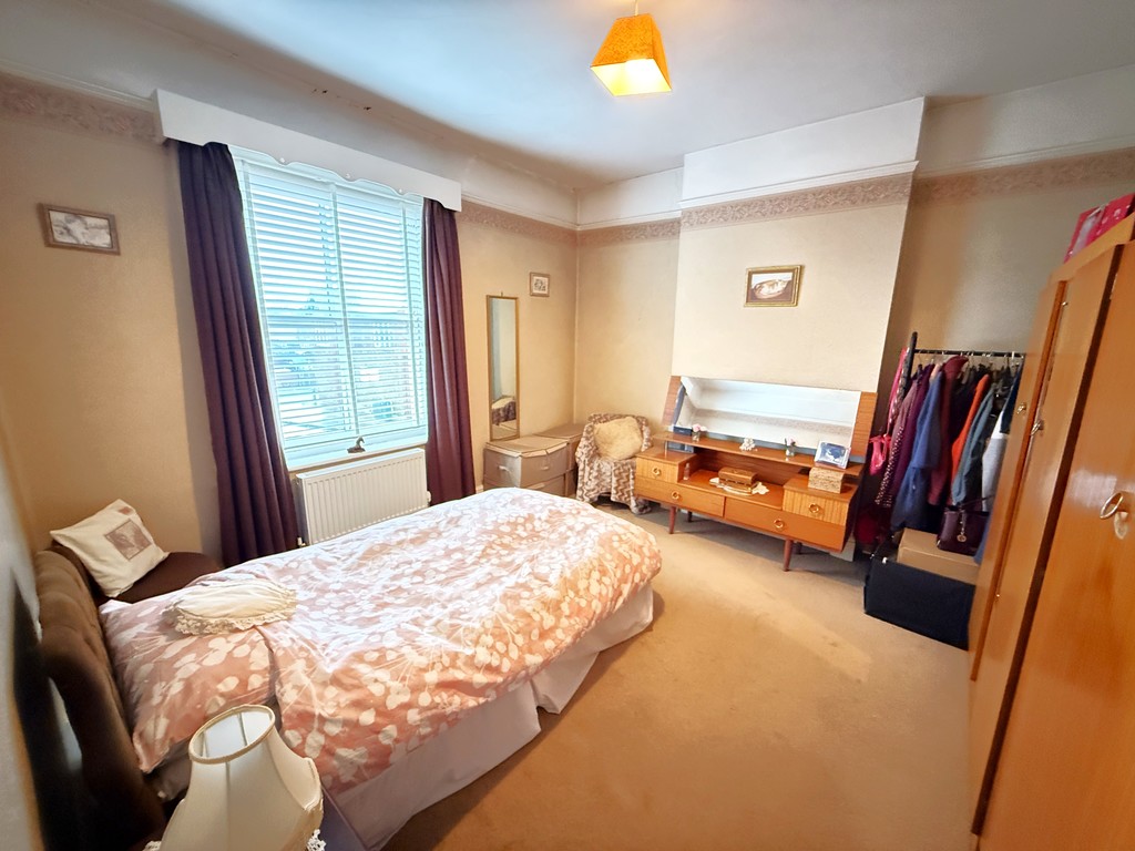 BEDROOM THREE 14' 2" max x 12' 1" (4.32m max x 3.68m) Double glazed sash window to rear, power points, double radiator, ornate former fireplace surround.