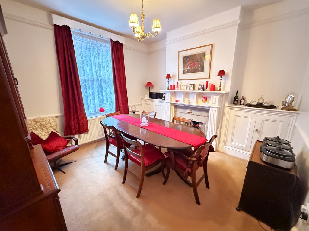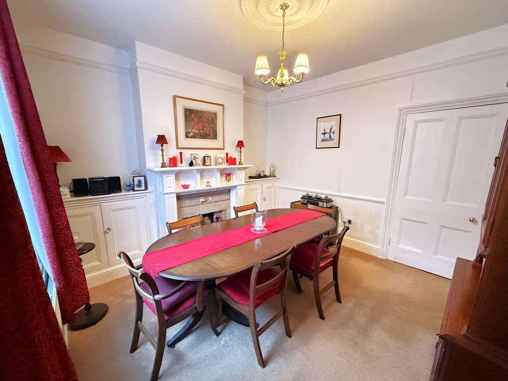 DINING ROOM 12' 1" x 10' 11" min (3.68m x 3.33m min) Central moulded ceiling rose, power points, double radiator, sash window to side, feature fireplace with low level cupboards either side of chimney breast.