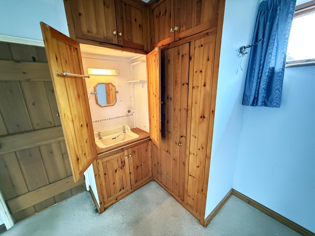 BEDROOM ONE 13' 11" max x 11' 10" max (4.24m max x 3.61m max) (max room measurements excluding fitted wardrobes) Skimmed ceiling, power points, television point, two night storage heaters, double glazed windows to the front side and rear, fitted wardrobes - one with a concealed wash hand basin having tiled splash-back and a light/shaver socket over.