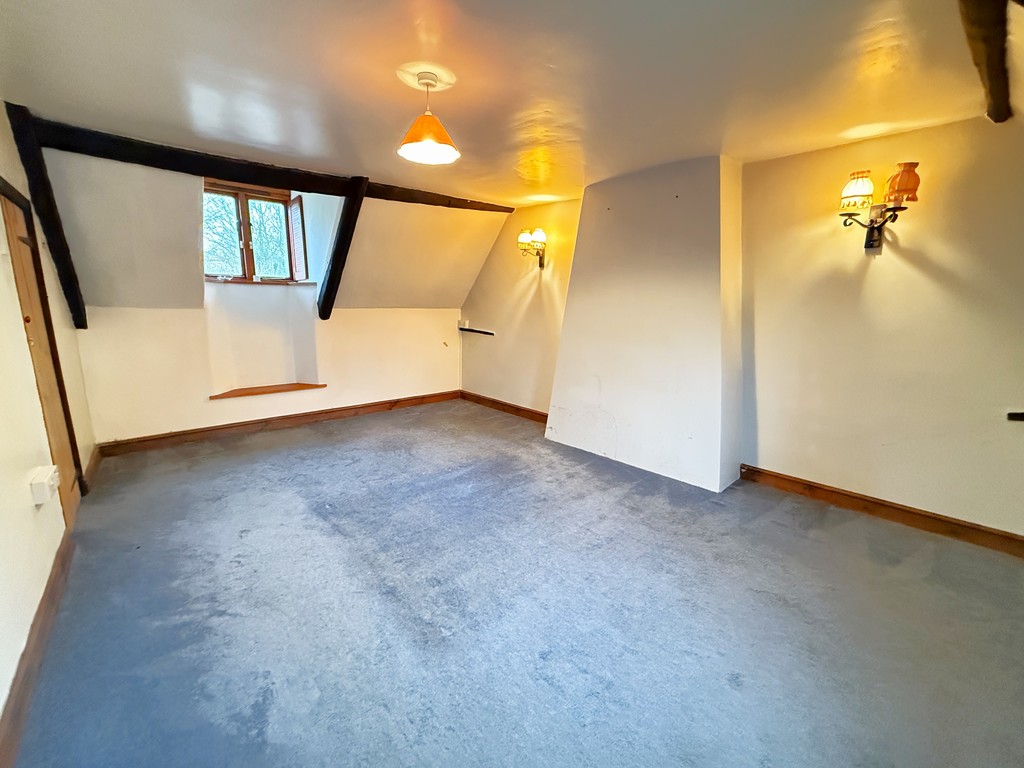 BEDROOM THREE 10' 9" max x 10' 9" min opening to 12' 9" max (3.28m max x 3.28m min opening to 3.89m max) (max room measurements excluding sloping ceiling) UPVC double glazed window to the side, power points, access to roof space.