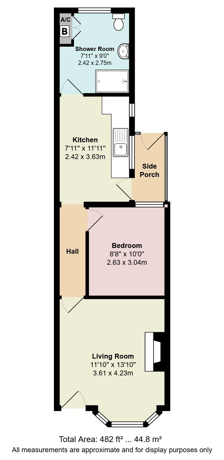 SIDE PORCH 7' 10" x 3' 7" (2.39m x 1.09m) UPVC double glazing, UPVC double glazed door to rear garden.